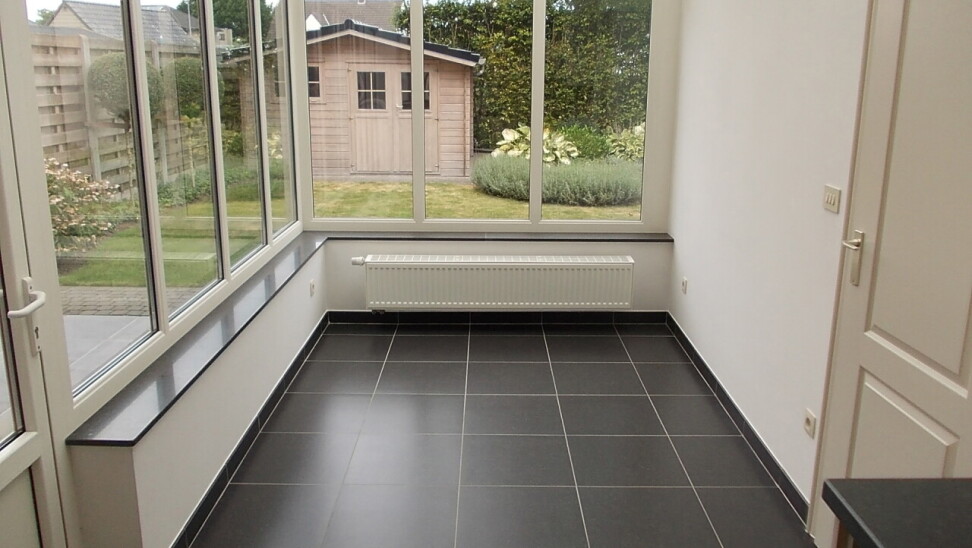 EETHOEK : 3,50 m x 2,25 m : tegelvloer, toegang tot terras en tuin.