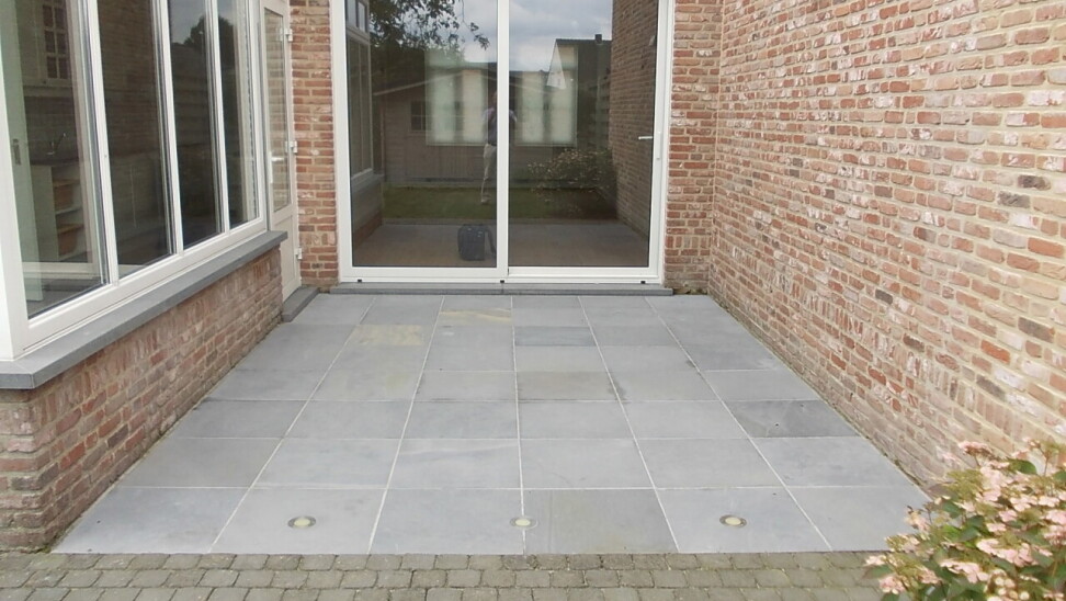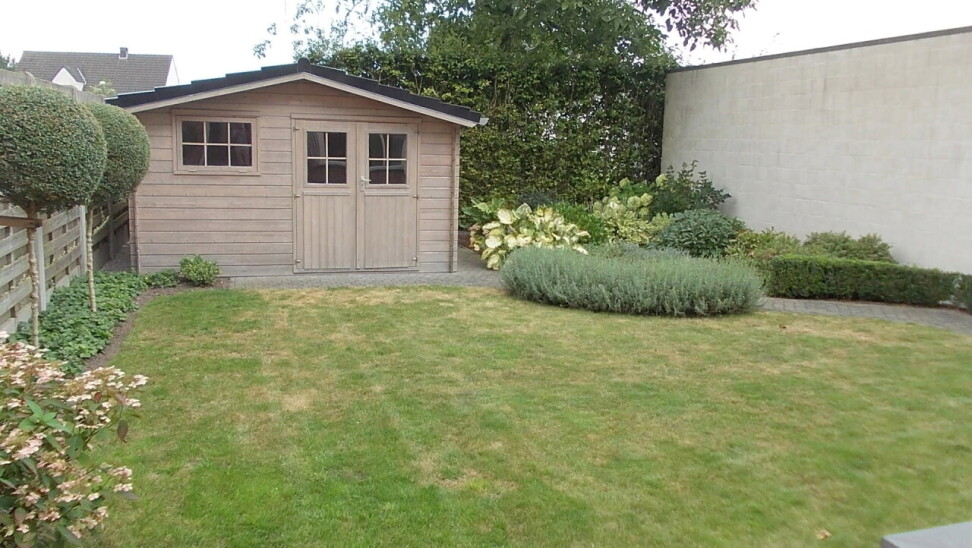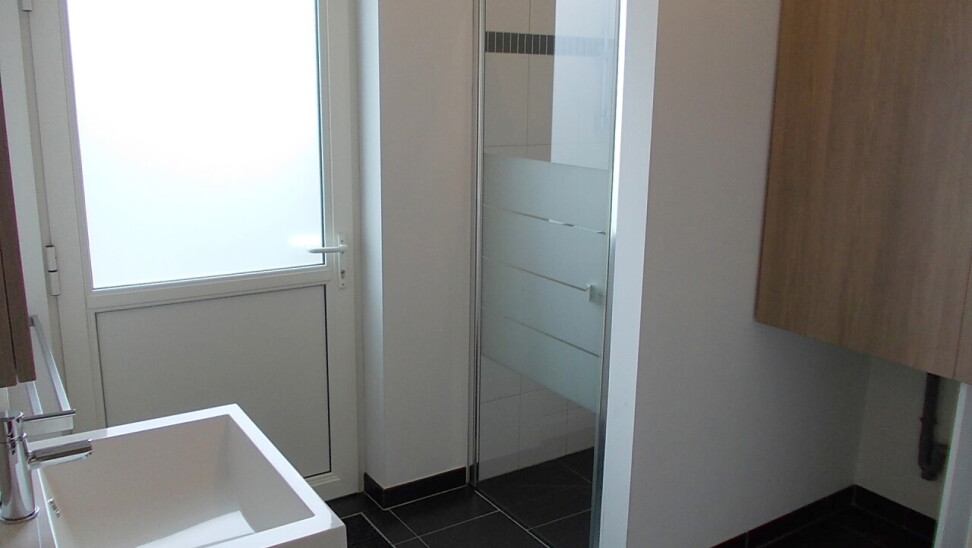 ACHTERINKOM : met voorziening voor wasmachine en droogkast, meubel met wastafel, douche, achterdeur naar terras en tuin.