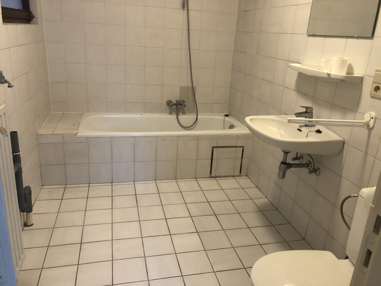 BADKAMER : 3,10 m x 2,00 m : met ligbad met douchesproeier, wastafel, toilet. Aansluitpunt voor wasmachine.