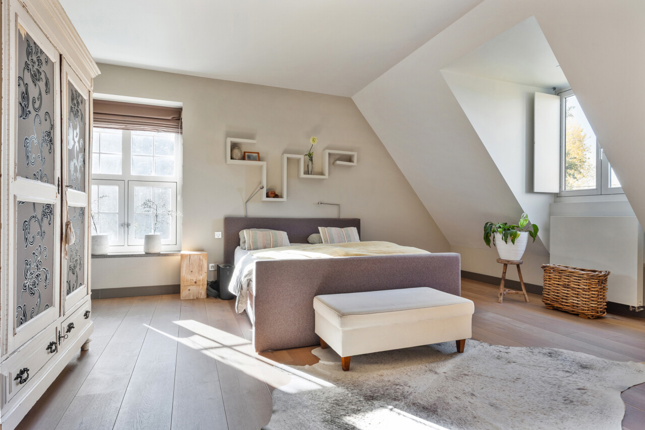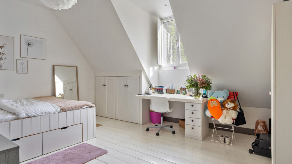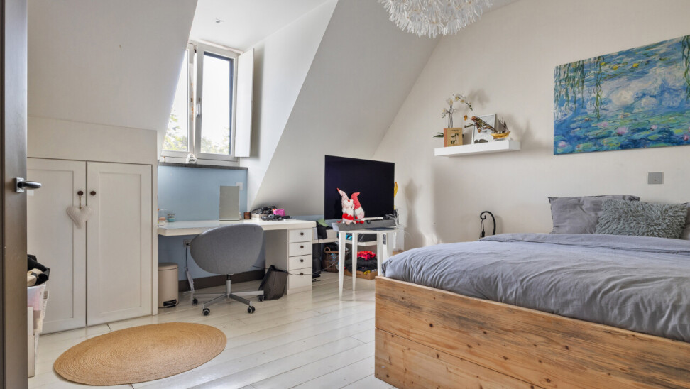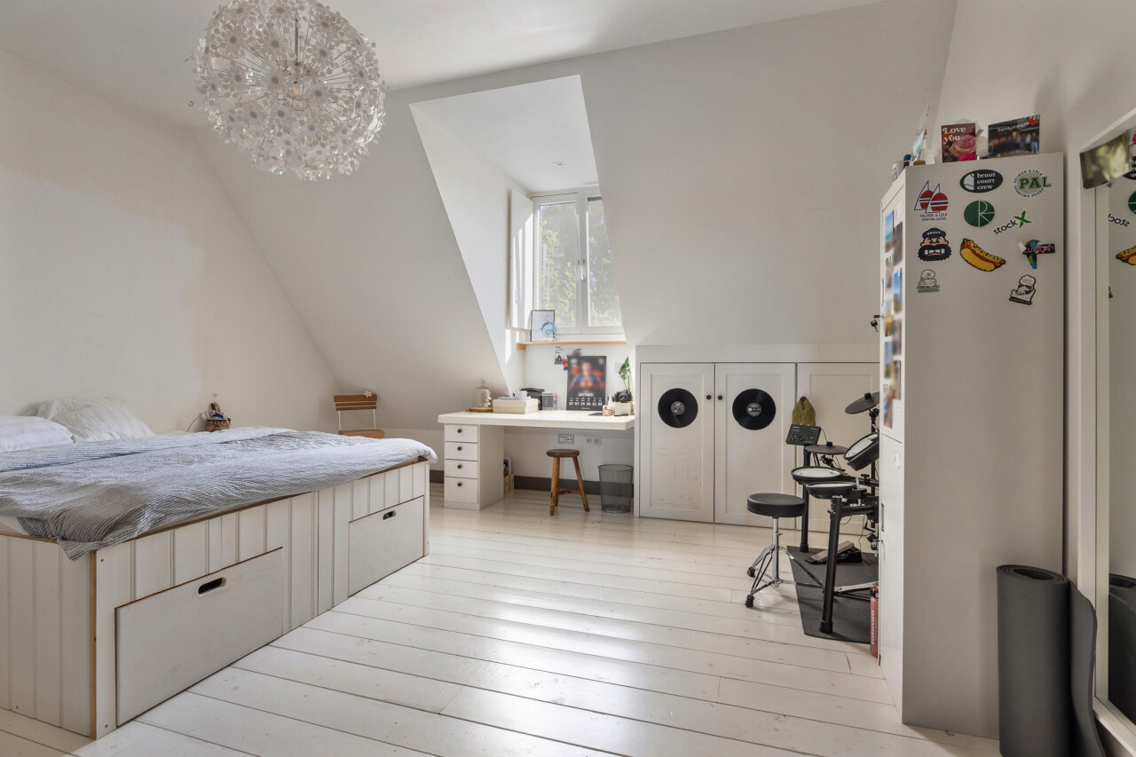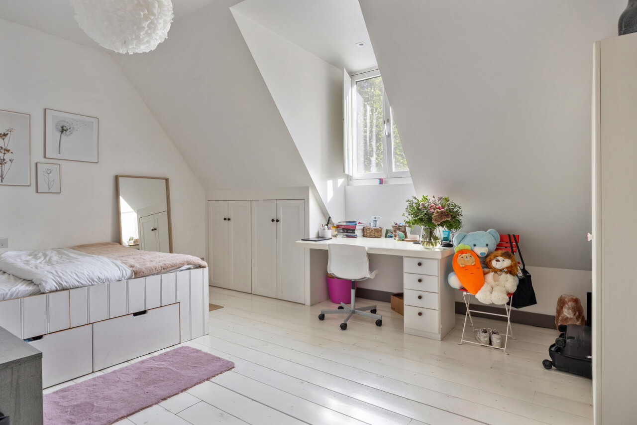 De overige slaapkamers hebben een dakkapel en ingemaakte kasten.