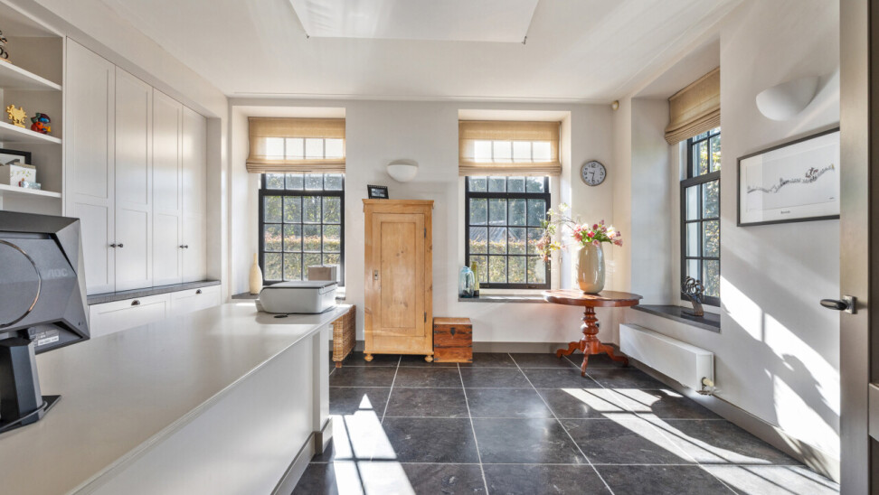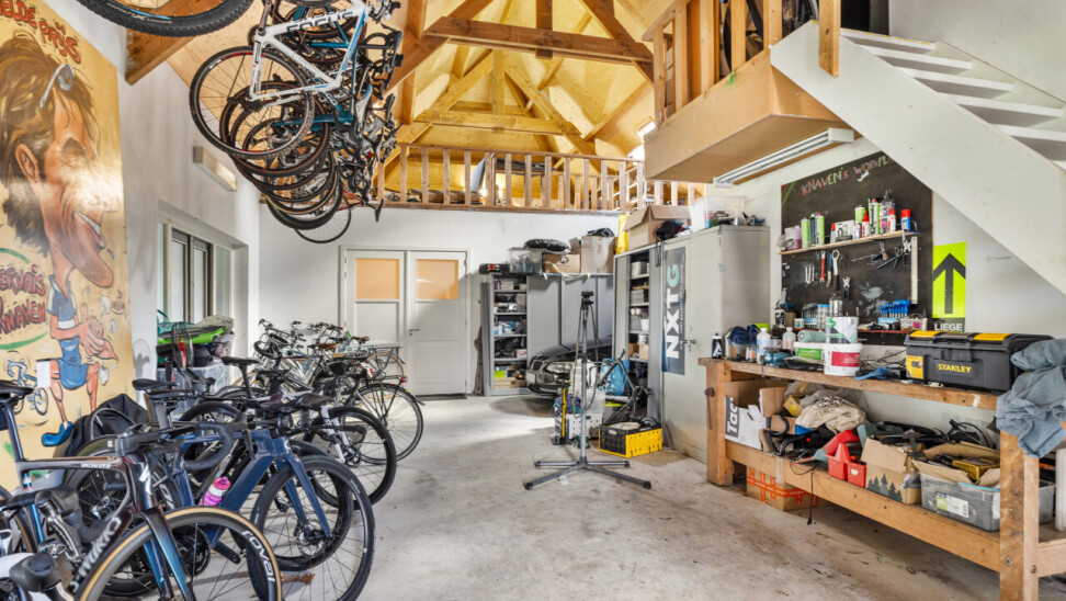 Bijkeuken : met aansluitpunt voor wasmachine en droogkast, uitgietbak, toilet, een kleedruimte, vaste kasten en een douche.